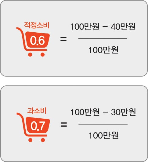 과소비지수란 월수입에서 월지출이 차지하는 비중입니다.