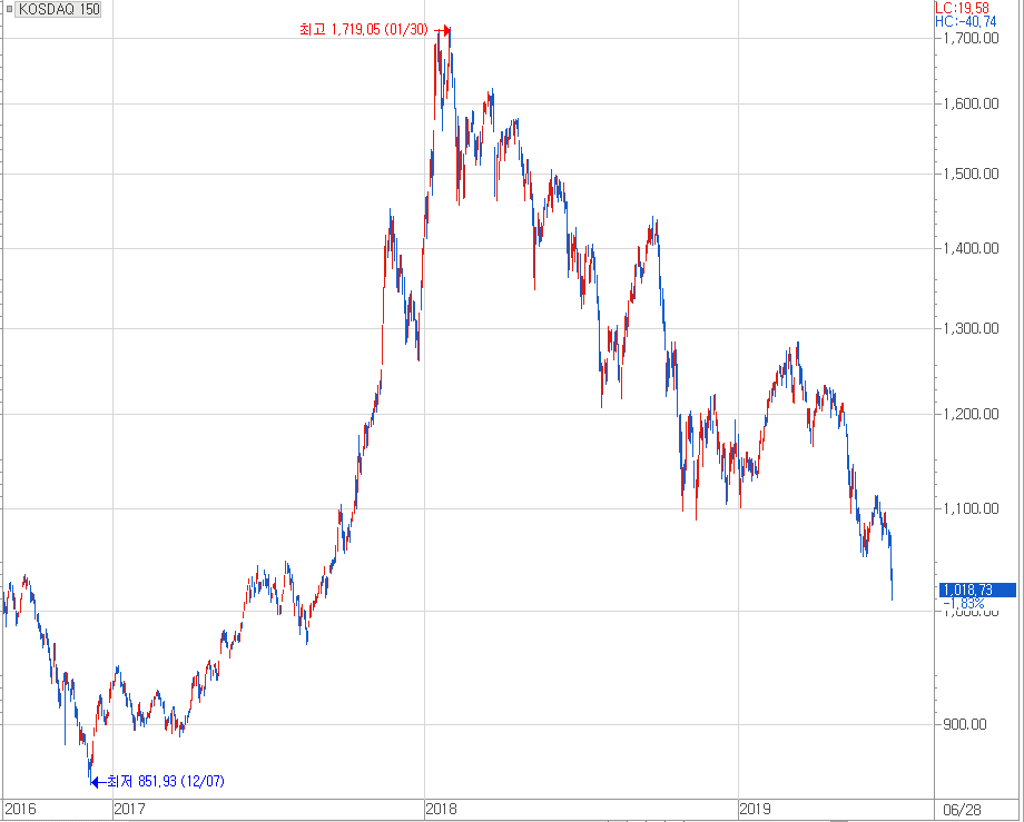 [코스닥150지수 2017년 이후 추이]