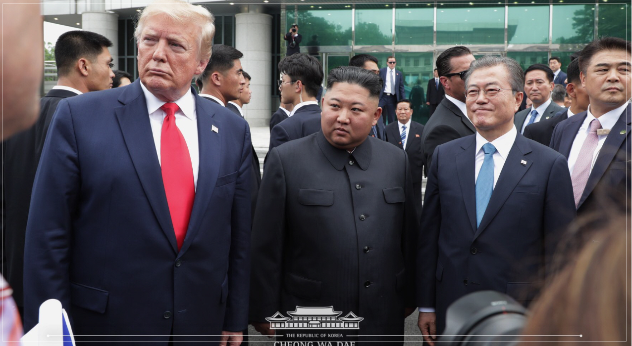 [역사상 최초로 남북미 세 정상이 판문점에서 함께 만나다. 사진참조 : 청와대 홈페이지]