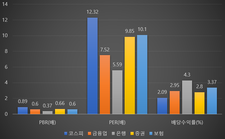 [금융업종 전체적인 밸류에이션은 저평가된 코스피보다도 더 저평가되어있다]