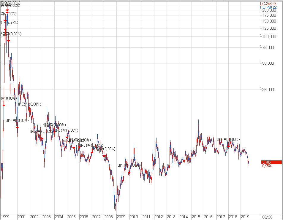 [IT버블 당시 대장주였던 새롬기술의 주가 아직까지도 최고점 대비 2% 수준]
