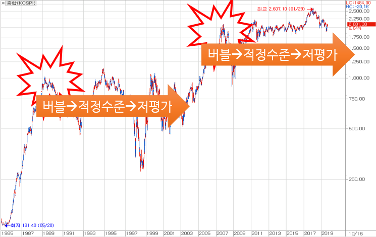 1989년의 주가지수 1000p가 버블이 가득한 손대면 톡하고 터질 것 같던 지수였지만