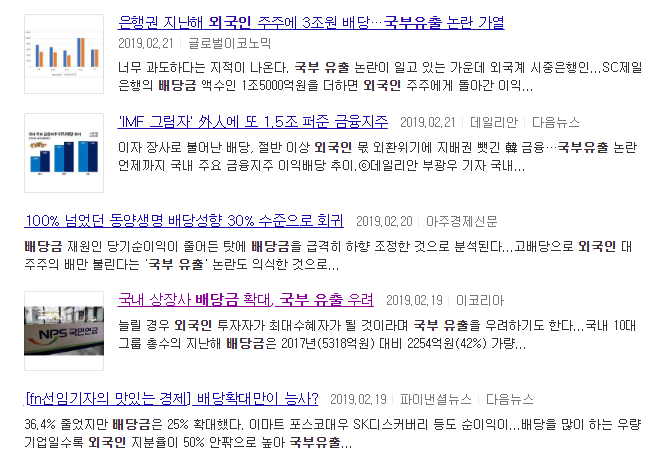 [자료참조 : 다음 뉴스검색 "외국인 배당금 국부유출]