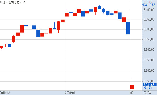 만약 이번 신종 코로나 이슈가 확산되는 와중에도 중국증시가 개장하였다면 충격완화 시간이 없기에 두자리수 이상의 개장 충격 하락이 발생했을 것입니다.