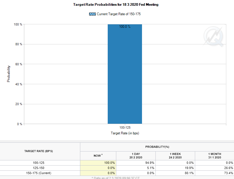 [3월 FOMC에서 기준금리 50bp 인하 가능성은 100%, 자료 : FED wathch]