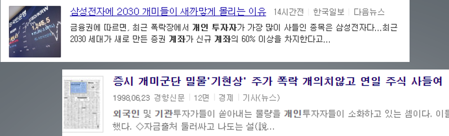[개인투자자의 러시를 다루고 있는 두 기사 22년이라는 시간 갭이 있지만 상황은 비슷하다]