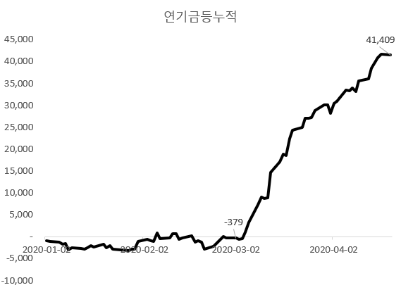 3월 급락장을 거치면서 시장에 크게 부상한 매수 주체로는 개인이 있지요. 그리고 그 뒤를 이어 연기금(등!)이 순매수를 강하게 만들었습니다. 연기금의 매수에 대하여 이런 저런 이야기가 많더군요. 굳이 하나하나 언급하지는 않겠습니다. 하지만 오래 동안 저의 증시토크를 보아오신 애독자분들은 아시겠습니다만, 연기금의 매매는 그저 기계적인 것에 불과하지요. (※ 고개를 끄덕 끄덕하시리라 짐작합니다.)