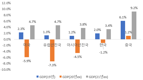 그리고 코로나19를 통제 가능 영역에 넣은 중국도 상대적으로 안정적인 경제성장률 수치를 예상하고 있습니다.