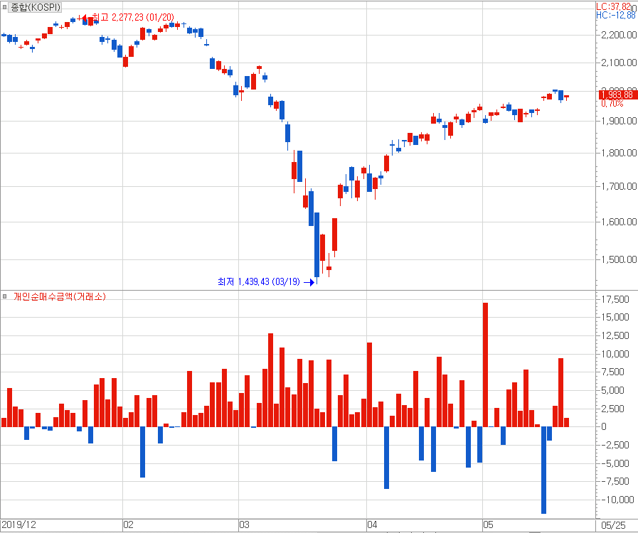 2달만에 폭등수준으로 올라온 주식시장 그러다보니 증시가 하락한다면 "당연한 수순"으로 이해될 정도로 이상할 것이 없습니다. 그리고 종합주가지수가 2000p에 이르를 때 올해 내내 동학개미운동과 함께 모여든 개인투자자가 일단 차익실현 후 흩어질 것처럼 예상되이지기도 하였습니다.