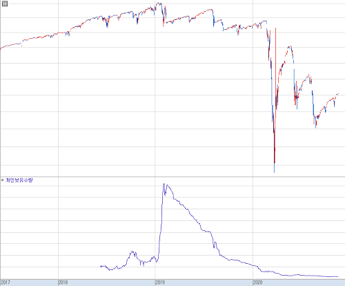 [가장 인기있던 양매도ETN의 2017년에서 최근까지의 가격흐름과 개인보유수량]
