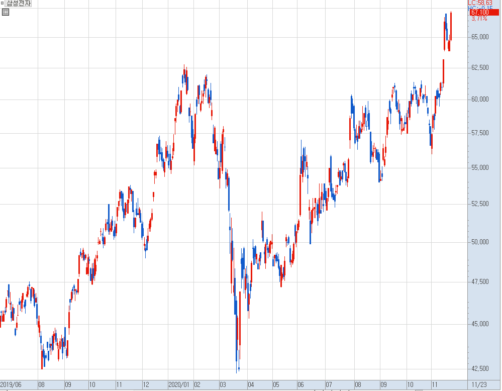 [사상 최고치 경신 후 개별주처럼 가볍게 상승하는 삼성전자]