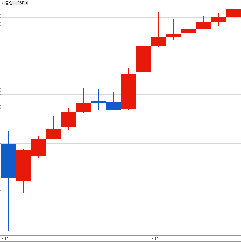 무조건 상승해야만 한다는 관성 말입니다. 주가지수 8개월 연속 양봉 상승.