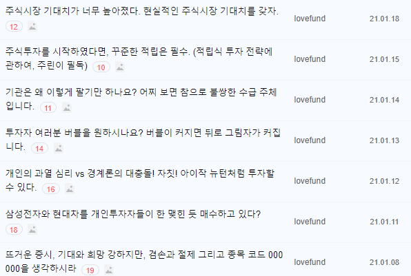 [ 지난 1월 중순 lovefund이성수의 논조는 군중심리 과열을 경계하고 있었다 ]