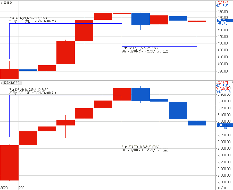 ▶ 향후 금융업종의 주가는 어찌 될지는 모르지만, 작은 힌트를 구할 수 있다.