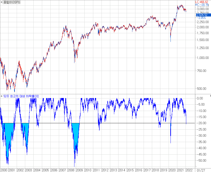 [ 2000년 이후 52주 최고치 대비 하락률 지표를 만들어보니 ]