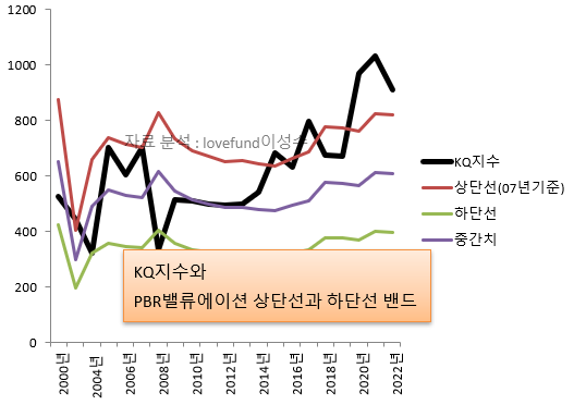 [ 코스닥 지수와 시장 PBR 밴드 추이, 자료 분석 : lovefund이성수 ]
