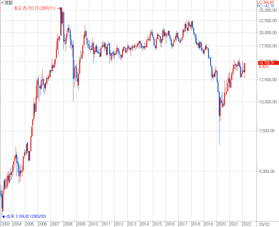 [ 지난 20년 보험업종 지수의 흐름 ]