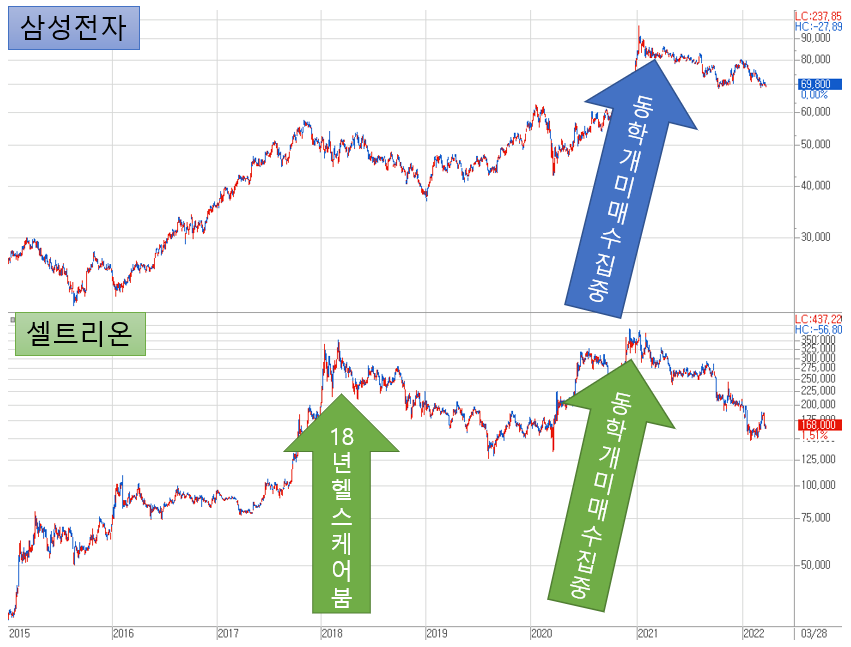 ▶ 개인투자자의 사랑을 독차지했던 삼성전자, 셀트리온