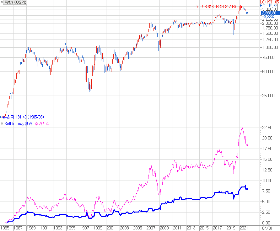 [ Sell in May 전략을 지표화하여 주가지수 수익률과 비교하다. 지표 제작 : lovefund이성수 ]