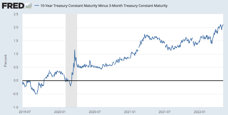 두 번째로, 美 10년-2년 국채 장단기 스프레드는 역전되었지만 美 10년-3개월 국채 스프레드는 되려 확대되고 있습니다.