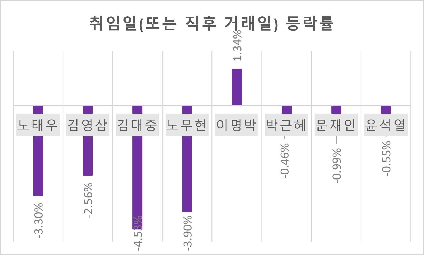 ▶ 역대 직선제 대통령 대부분 취임 당일 증시는 꼭 하락했다.