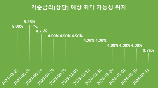 [ 기준금리(상단) 예상 가능성 위치. 자료 참조 : FED Watch ]
