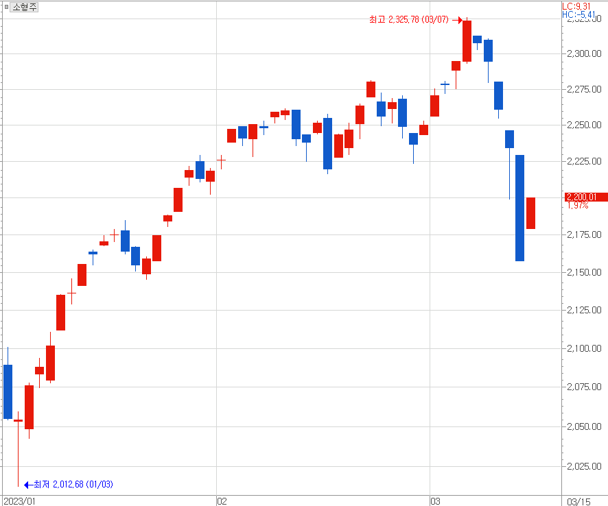 중소형주와 스몰캡은 전통적으로 개인투자자들의 거래대금이 절대적인 영역이다 보니, 스몰캡 지수의 등락률은 개인투자자의 심리를 반영하고 있다고 해도 과언이 아닙니다.