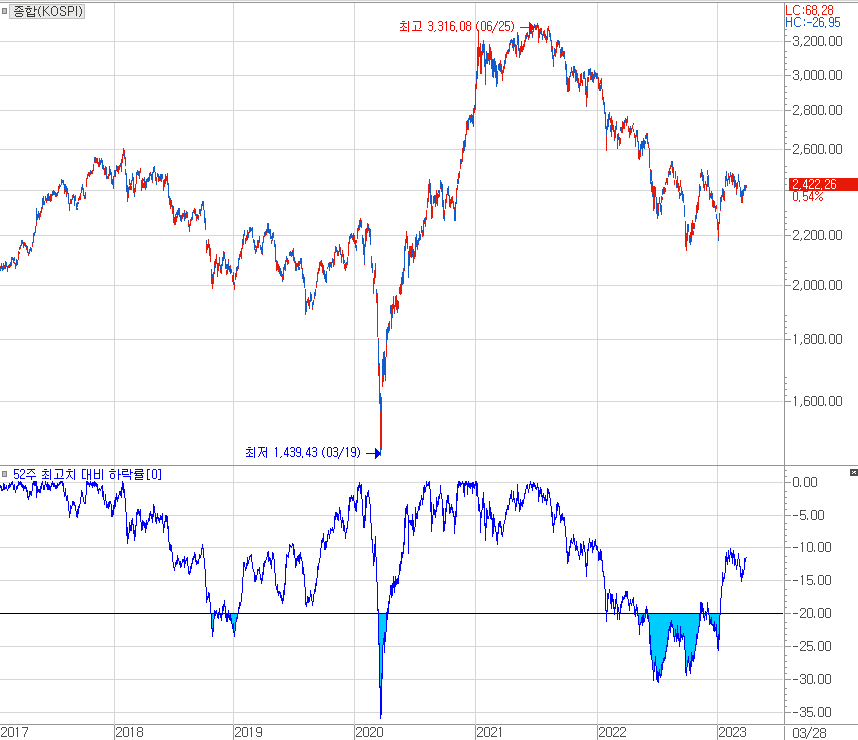 대표적으로 3년 전 2020년 3월 코로나 팬데믹으로 증시가 폭락 상황이 발생하였을 때, 그런대로 손실을 견뎌낸 투자자들은 이후 강세장을 오롯이 취할 수 있었지만, 그 순간 시장을 강제로 떠나야 할 수밖에 없었던 투자자들은 강세장을 멍하니 바라볼 수밖에 없었지요.