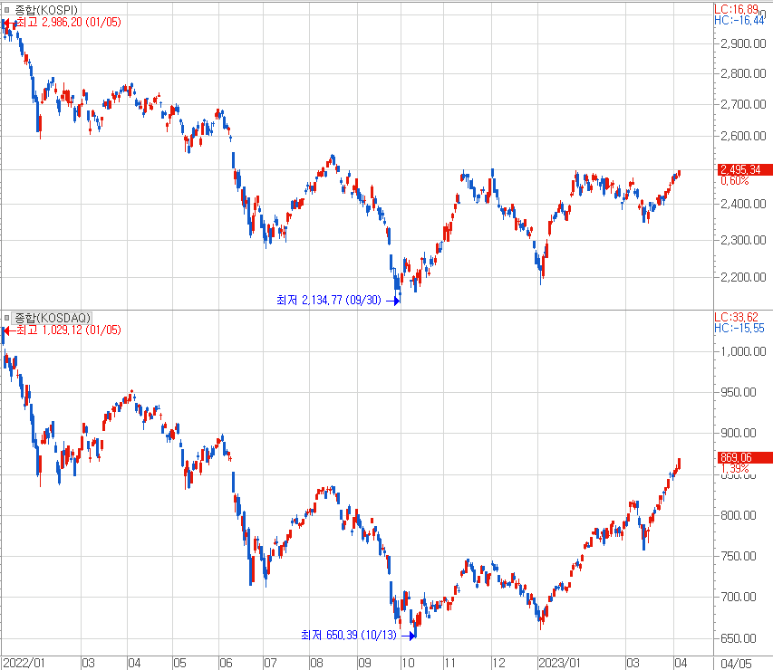 하방경직 가능성과 바닥에 대한 시장 확신이 커졌다는 것을 주가지수는 보여주고 있습니다. 이는 한편 주가지수 2,500p 돌파 가능성을 기대하게 대목이기도 합니다. 물론, 주가지수 2,500p 돌파 여부는 미래의 일이기에 확답할 수 없는 영역이긴 합니다.