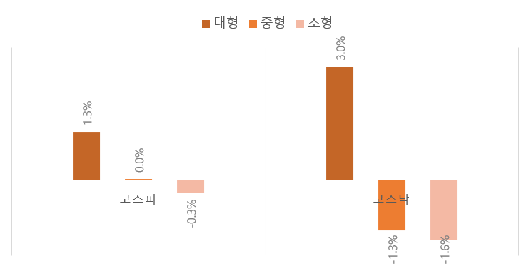 [ 월요일 오전, 코스피와 코스닥 시장에서 대형주만 상승하는 차별화 장세 발생 ]