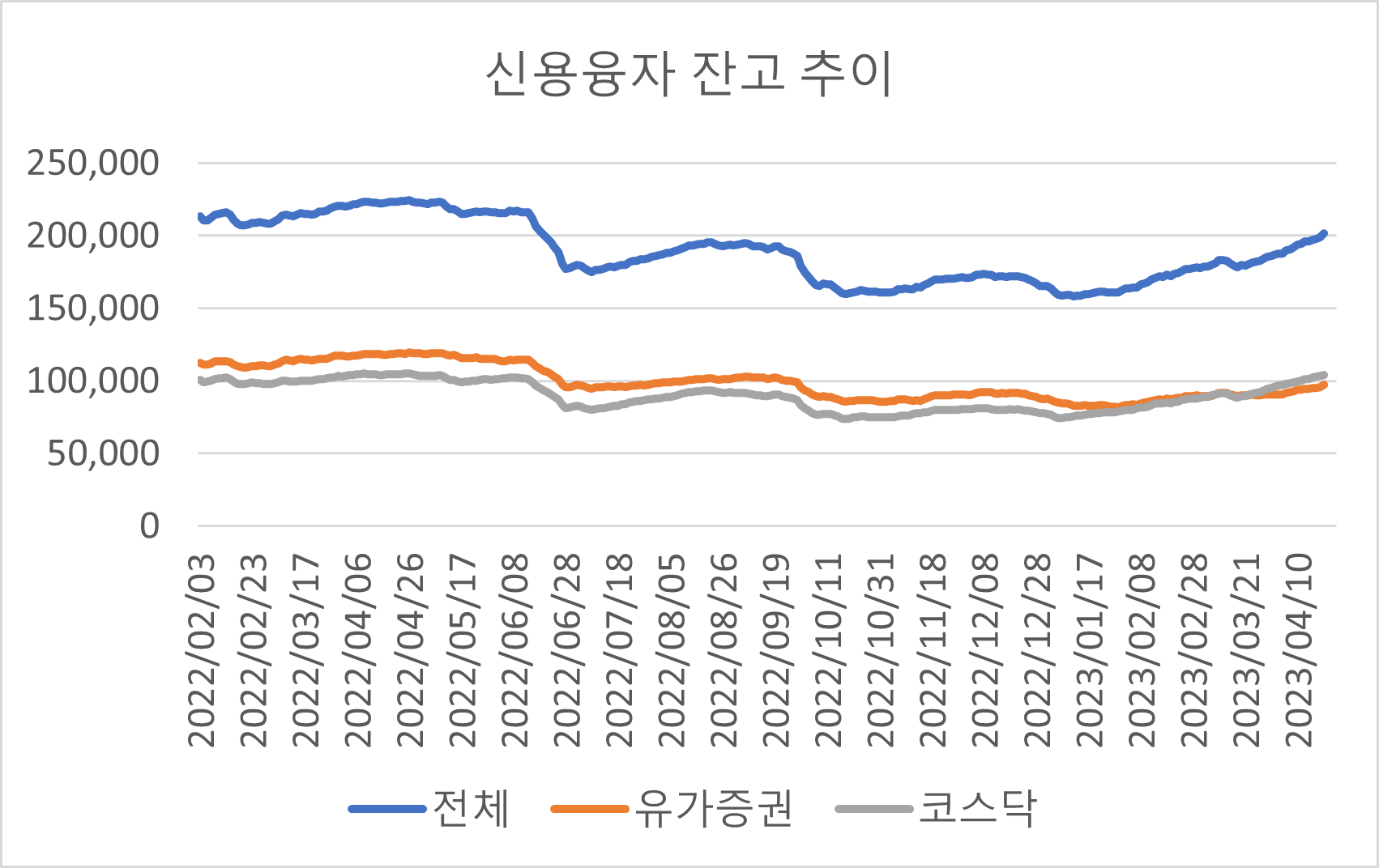 [ 신용융자 잔고 추이. 자료 : 금융투자협회 ]