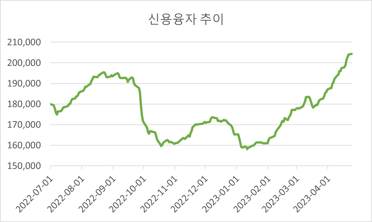 [ 신용융자 잔액 추이. 자료 참조 : 금융투자협회 ]