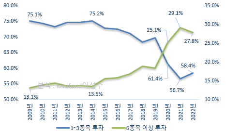 과거에 비하여 넓게 분산투자라는 투자자가 많이 늘어난 것이지요.