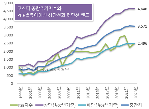 [ 코스피 지수와 PBR 밴드 추이 속에서 현재 증시가 저평가된 것은 보이지만 ]