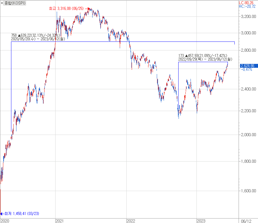 작년 가을 증시만 하더라도 군중심리는 코스피 지수 기준 2,000p가 깨지고 1,500p 아니 1,000p 간다며 불안해하였고, 당시 유튜브 섬네일은 비관적인 내용들로 가득 찼었습니다. 하지만 요즘은 지금은 그렇지는 않지요? 물론 군중심리 열기가 올라온 것은 아니지만 서서히 위 방향을 보는 투자자의 시각이 늘고 있습니다. 그리고 “다시 주식 가는 걸까?”라면서 고심하고 있을 것입니다.