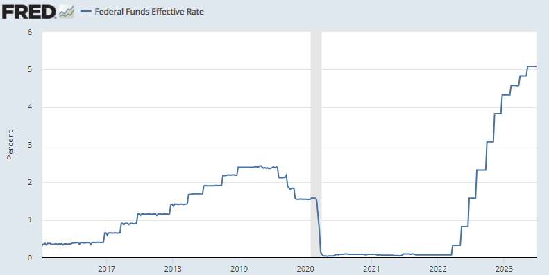 [ 미국 연준의 FF 금리 추이. 자료 : FRED ]