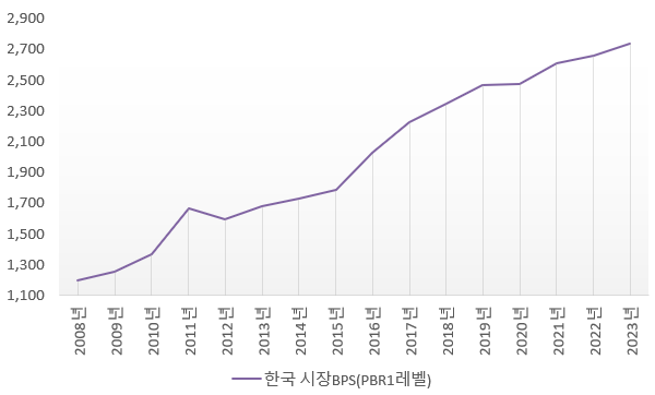 대략 연평균 3~4% 정도씩 시나브로 시장 BPS는 성장해 왔습니다.