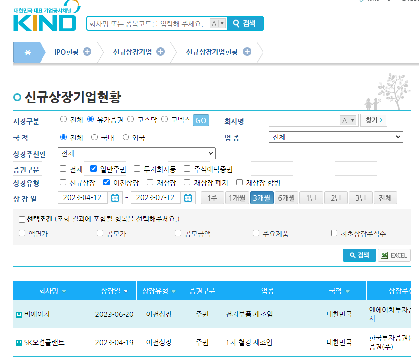 [ 참고 : 한국거래소 공시 KIND를 통해 쉽게 코스피에 이전했던 종목들을 찾아볼 수 있다 ]