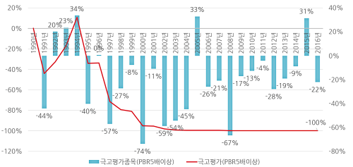 [ 극 고평가 종목군 PBR 5배 이상 포트폴리오의 성과 ]