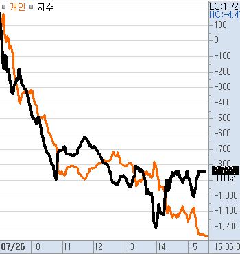 [ 7월 26일 장중 코스닥 Small 지수와 개인투자자 수급 추이 ]