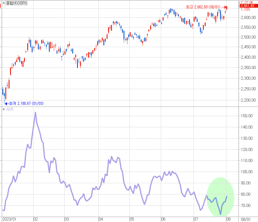 [ 코스피 종합지수와 ADR 등락비율 추이 ]
