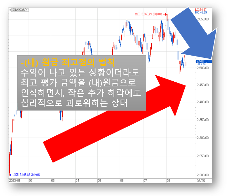 그것은 바로 "원금 최고점의 법칙 : 내 투자 원금은 며칠 전 최고 수준이다"라는 투자심리입니다.