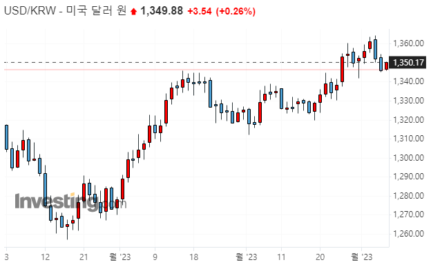 달러당 1,350원에서 착 달라붙어 있었습니다. 만약 국내 금융 시스템에 무언가 문제가 발생했다면 달러 환율이 1,360원을 넘어 1,400원을 향해 달렸을 터인데 오히려 너무 조용했습니다.