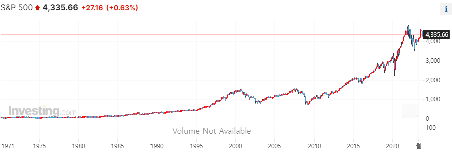 [ 미국 S&P500 장기 추이. 자료 참조 : 인베스팅 ]