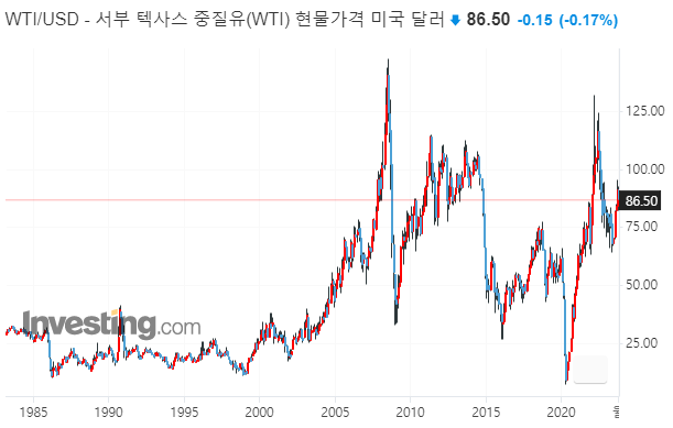 [ WTI 현물 가격 추이. 자료 참조 : 인베스팅 ]