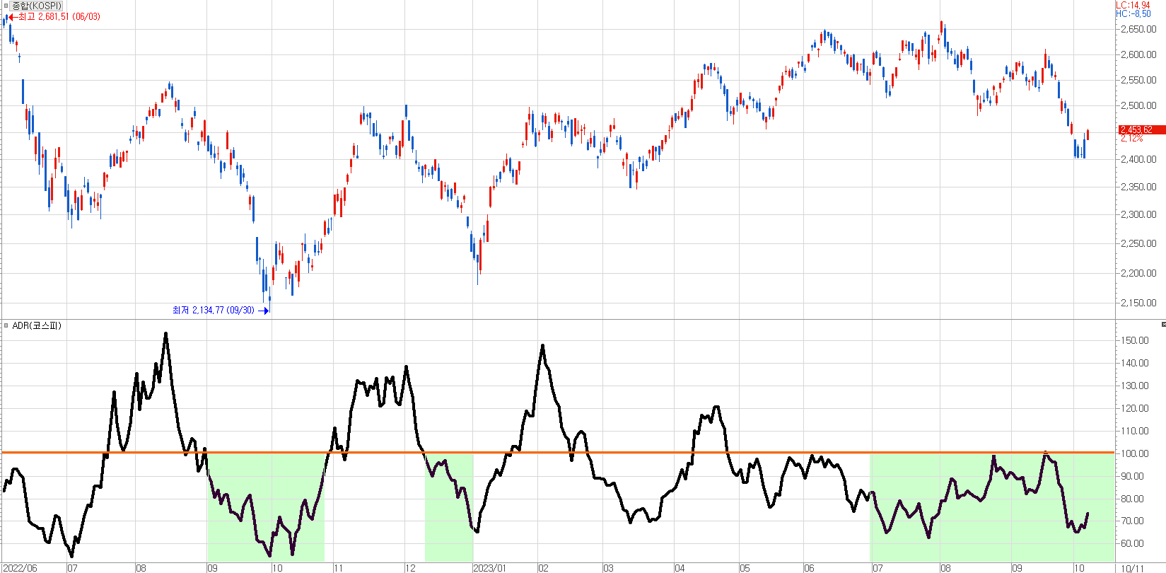[ 올해 하반기 대부분의 기간 동안 ADR 지표는 100 미만에 있었다. ]