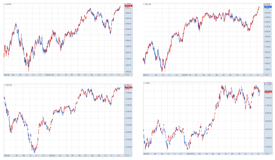 그나마 한국 증시가 미국 증시와 커플링 된 부분이 많다 보니, 중국 증시처럼 추락하는 것이 아니라 그런대로 11월 이후 강세 흐름이 만들어져 있습니다.