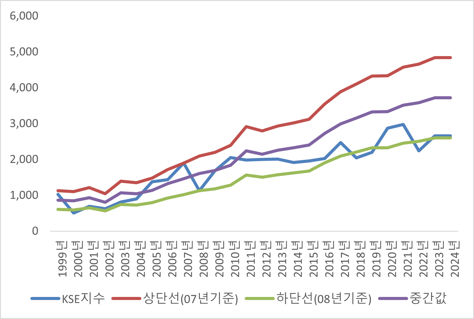 [ 한국 코스피 PBR 밴드와 종합주가지수 추이. 원자료 참조 : KRX / 분석 : lovefund이성수 ]