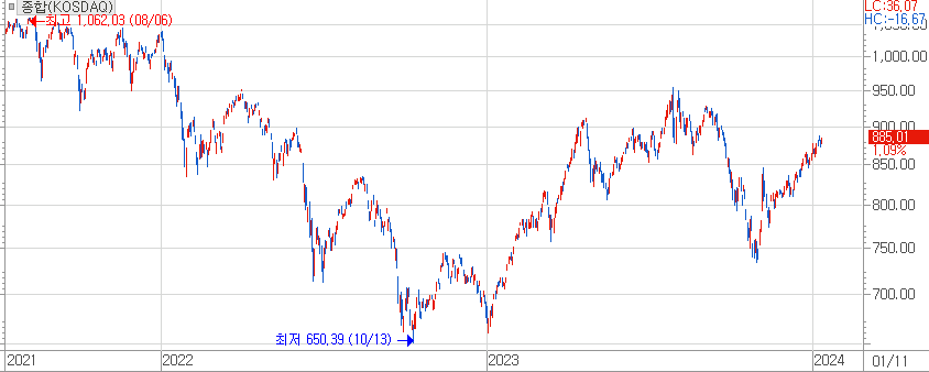 [ 증시 정체기인 지난 2년 동안의 코스닥 지수 흐름 ]