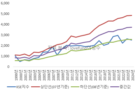 [ 코스피 지수와 PBR 밴드 추이. 원자료 : KRX / 분석 : lovefund이성수 ]